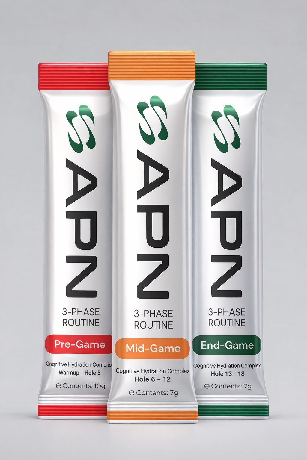 15 sachets. 5 rounds. Science-backed focus and energy for every hole. Each pack delivers the complete 3-phase protocol — Pre-Game, Mid-Game, End-Game — precisely timed for all 18 holes.