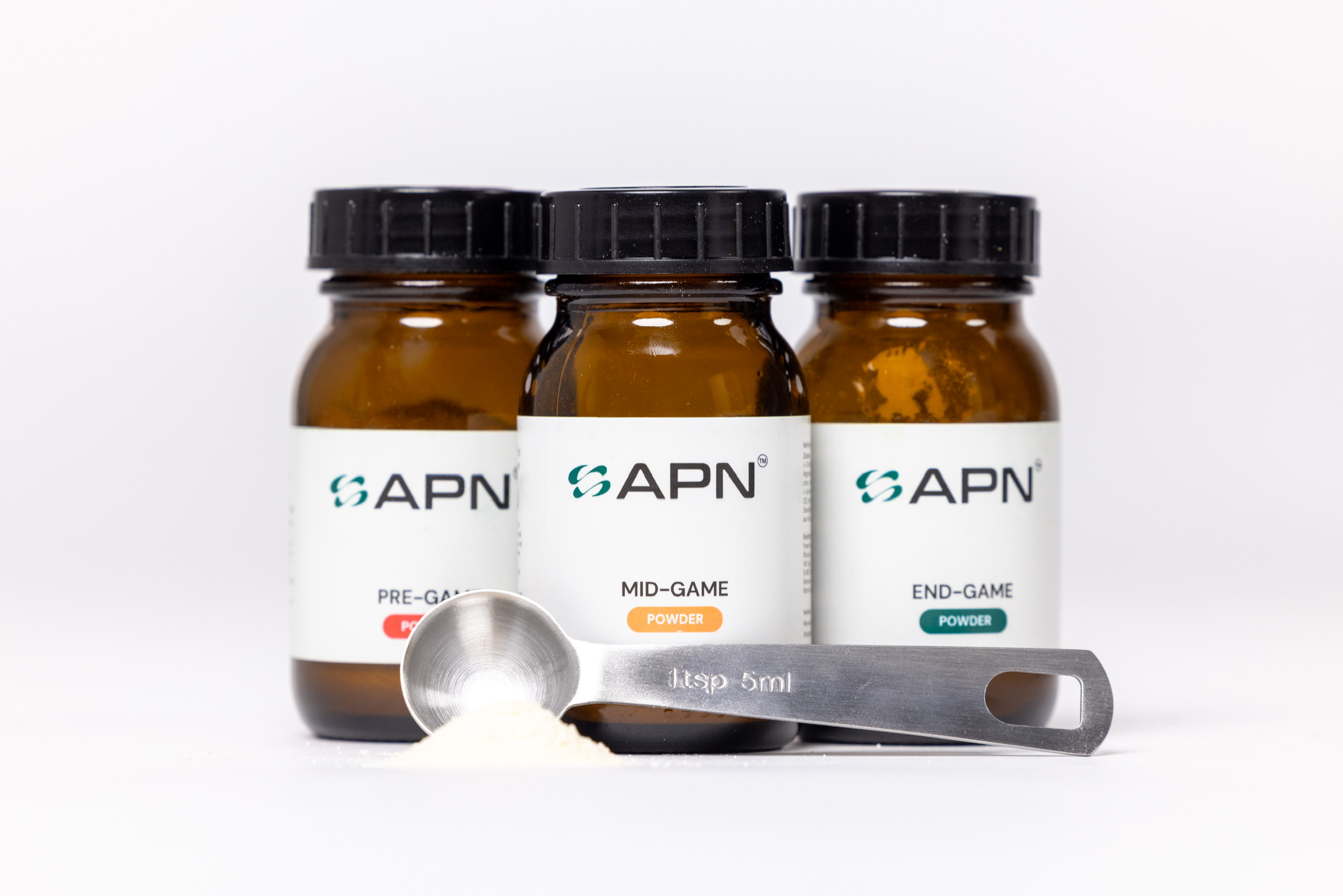 Use 1 scoop per stage per round. Mix each scoop of APN FUEL with approximately 500 ml of water in your APN bottle. Start with Pre Game during warm-up, Mid Game on or after hole 6, and End Game on or after hole 13.